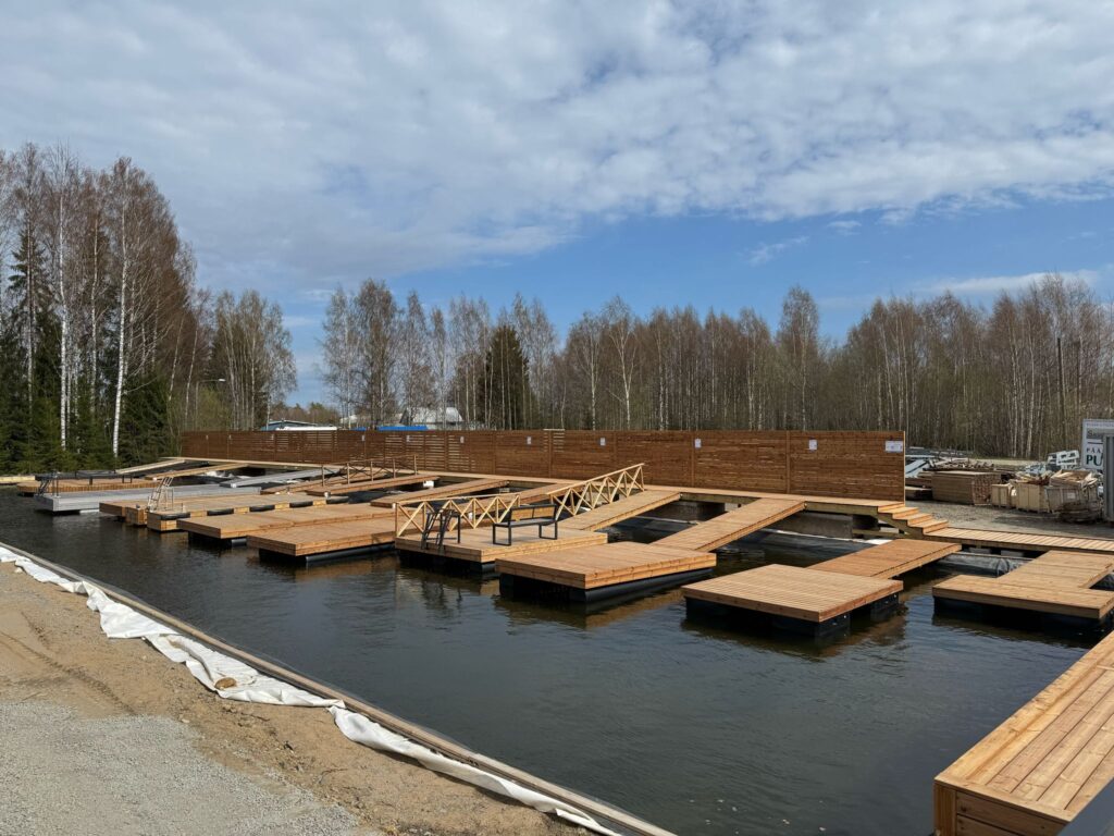 Esittelyaltaamme on nyt valmis ja varusteltu – kaikki kaiteet, valot, penkit ja lisävarusteet ovat paikoillaan. Nyt sinulla on mahdollisuus tutustua laitureihimme aidossa käyttöympäristössä suoraan tehtaallamme Rantasalmella.