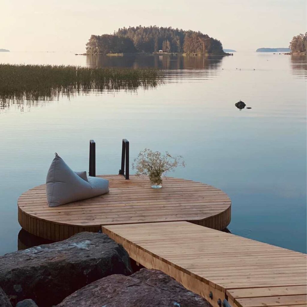 Naantalin 2022 Luonnonmaan saarella. Villa Lillan saunarivitalon oma uima- ja veneilylaituri.