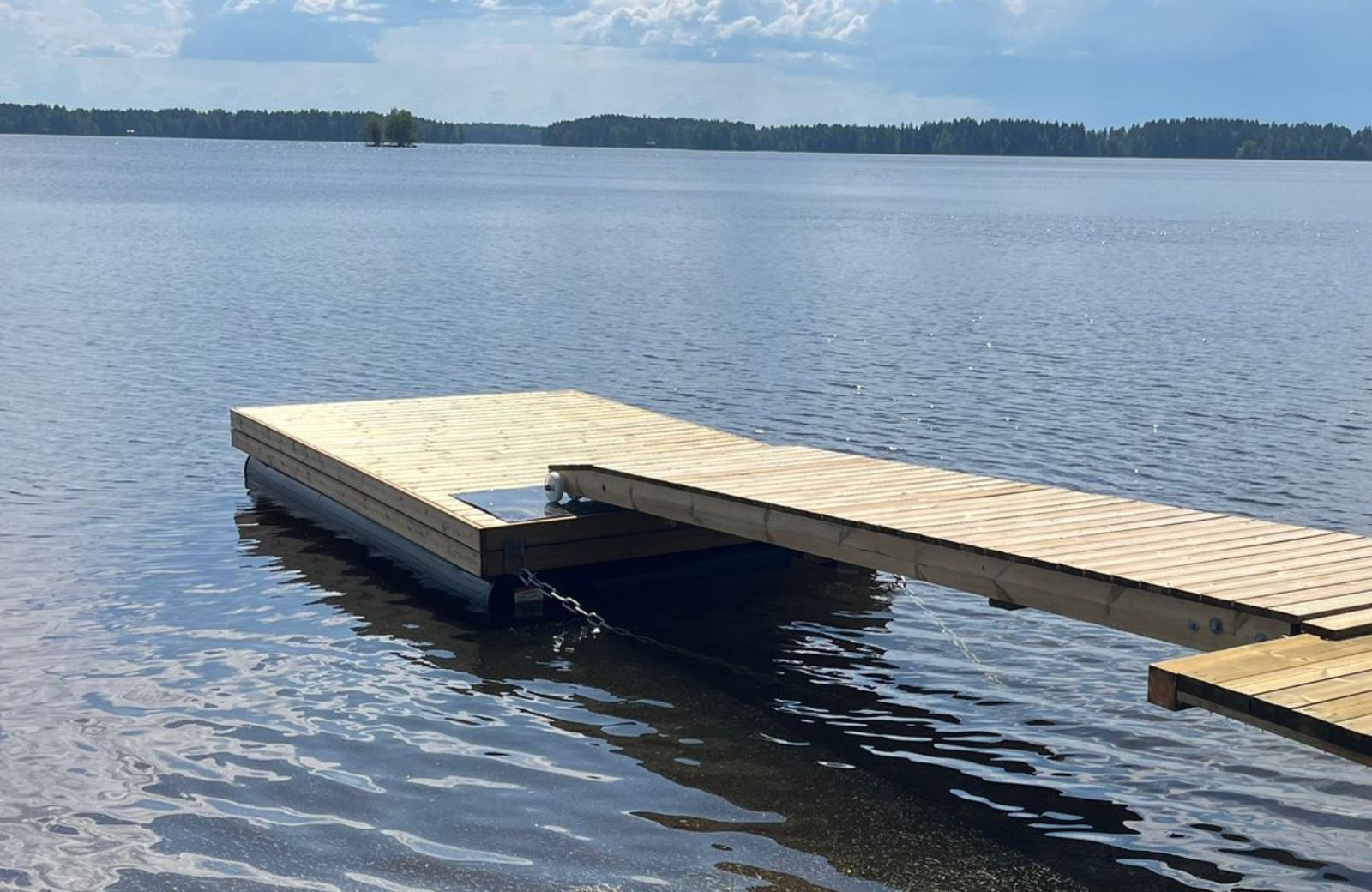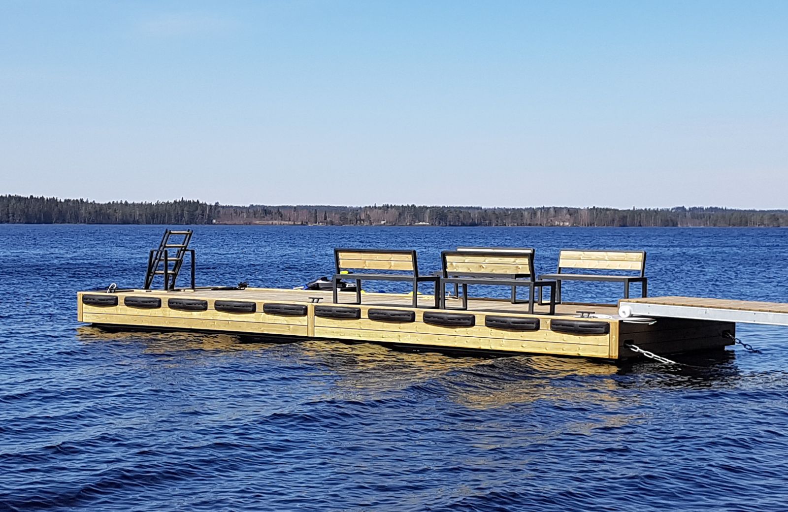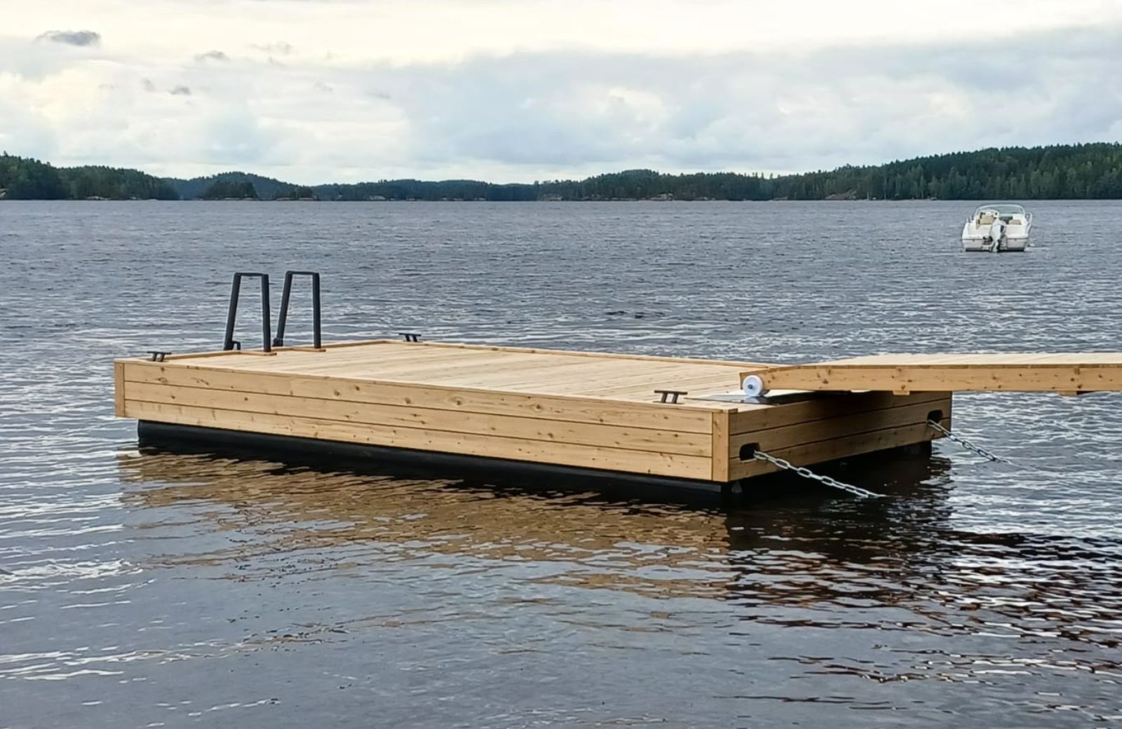 Putkiponttonilaituri sopii niin oleskelulaituriksi kuin isompienkin veneiden kiinnitykseen. Sen vakaus ja turvallisuus säilyvät myös haastavissa olosuhteissa.