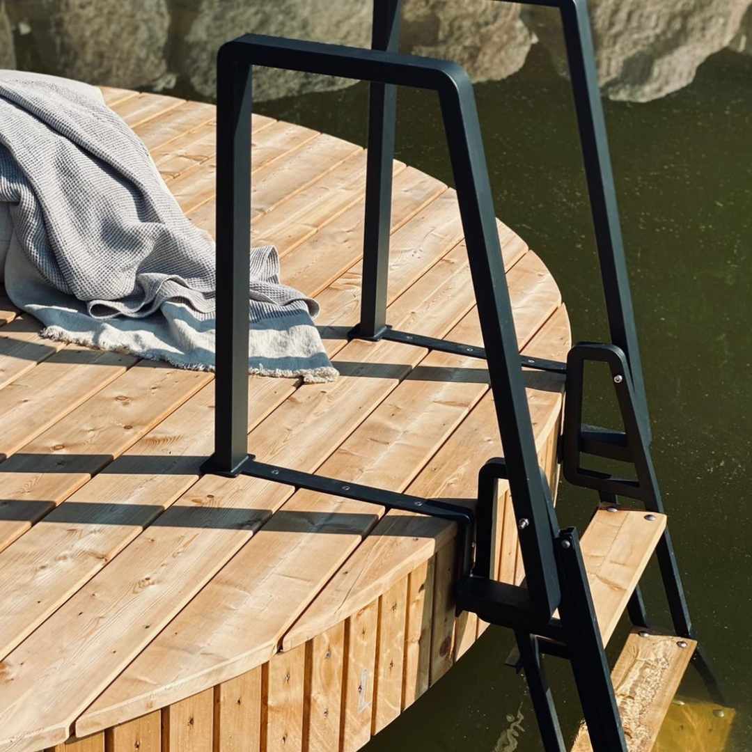 "Tällä hetkellä laituri on ensisijaisesti tarkoitettu lasten uimiseen ja hyppimiseen sekä tietenkin vesiskootterin kiinnittämiseen. Ystävät kehuivat kovasti yritystä ja laituria. Ihastuttiin heillä myös tähän näyttävään ja massiiviseen lankkuun. Halusimme käyttää tätä tiettyä puulajia laiturissa – Savorakin kanssa se onnistui. Laituri on vielä parempi kuin olin ajatellut! Olen esteetikko ja nautin kauniista asioista. Laituri on jokapäiväinen ihailun aihe"