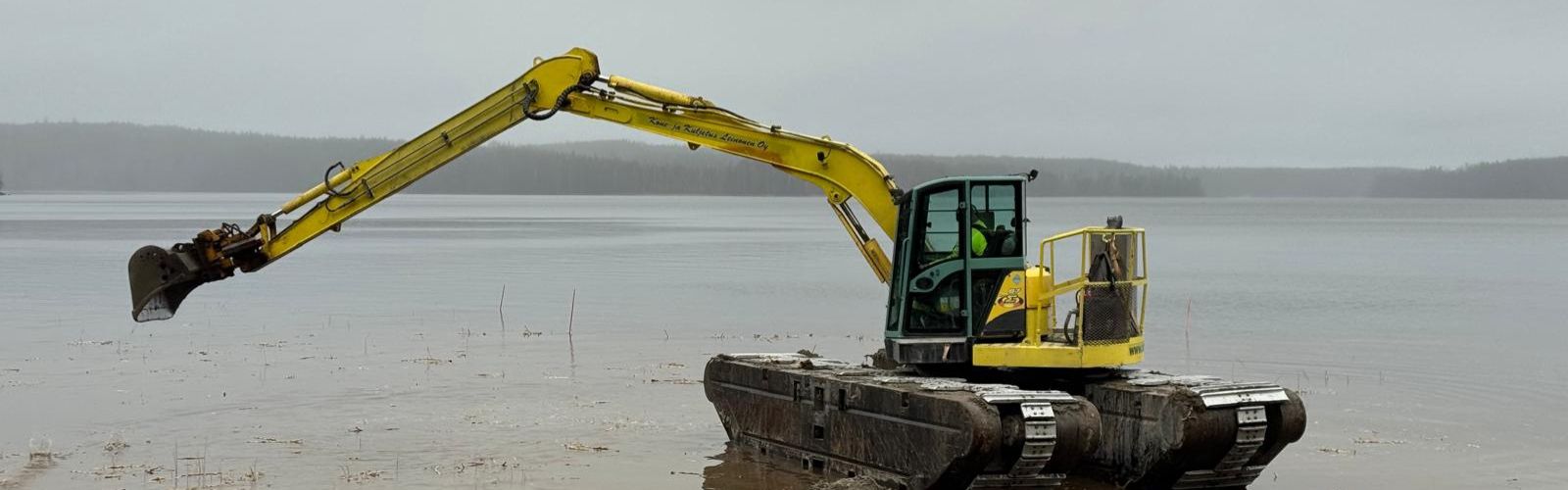 Valitsemme aina kohteeseen parhaiten soveltuvan kaluston. Läheltä rantaa tehtävät työt onnistuvat usein pitkäpuomisella kaivinkoneella maalta käsin. Haastavammissa kohteissa käytämme lautoille ajettavia kaivinkoneita tai erikoiskalustoa, kuten itsenäisesti kelluvia ja liikkuvia Amphibious-työkoneita. Ruopattu maa-aines sijoitetaan aina asianmukaisesti maalle kuivumaan. Huolehdimme koko prosessista ammattitaidolla alusta loppuun.