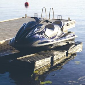Käytännöllinen vesijettilaituri sopii jetin kiinnitykseen ja säilytykseen. Säästät aikaa sekä vaivaa, kun et joudu nostamaan jettiä trailerille tai jättämään sitä veteen vaan ajat sen käytön jälkeen jettilaiturille. Pohja pysyy paremmin puhtaana ja ajo-ominaisuudet hyvänä.