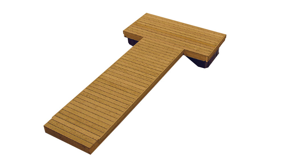Sauna 1: 4,8 m on perinteinen T-mallinen, yksiosainen muoviponttonilaituri. Päätylevennys tekee tästä muuten kompaktista laiturista mielekkään käyttää.