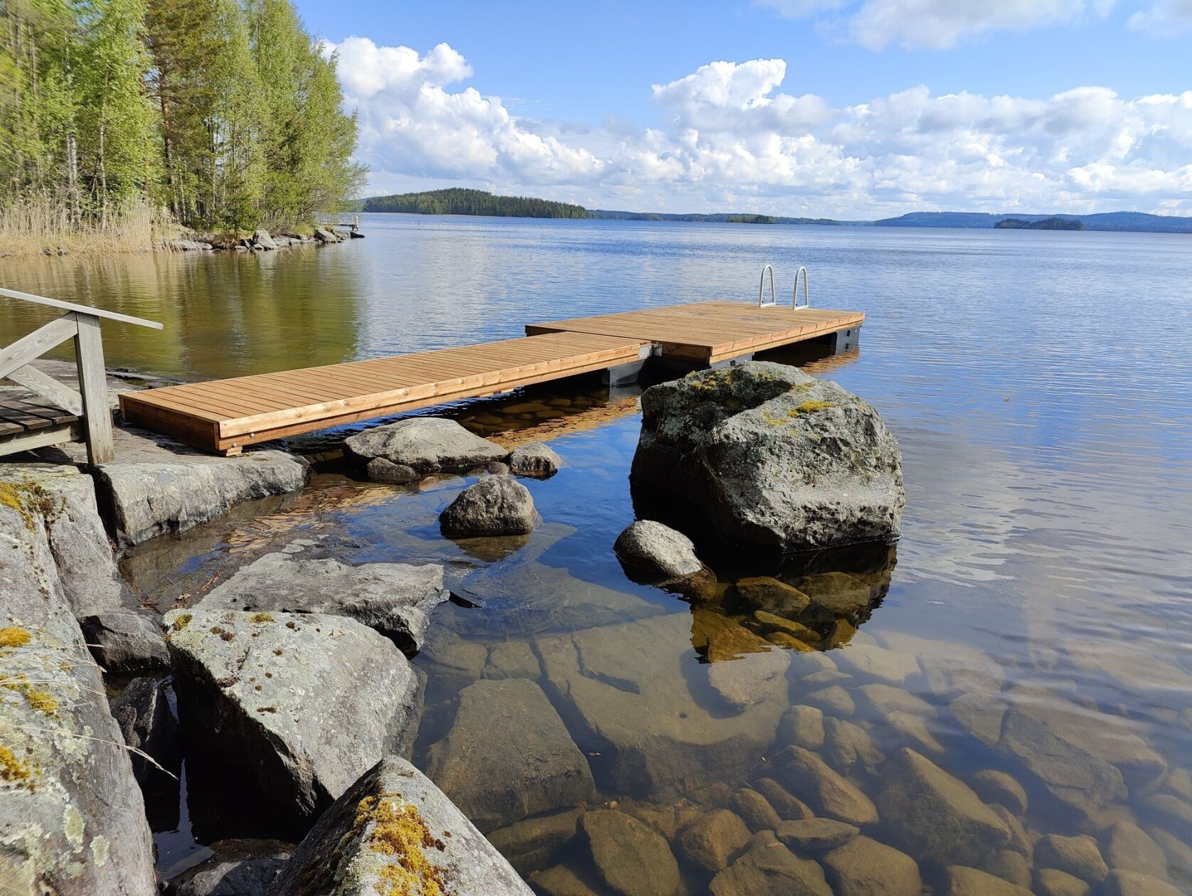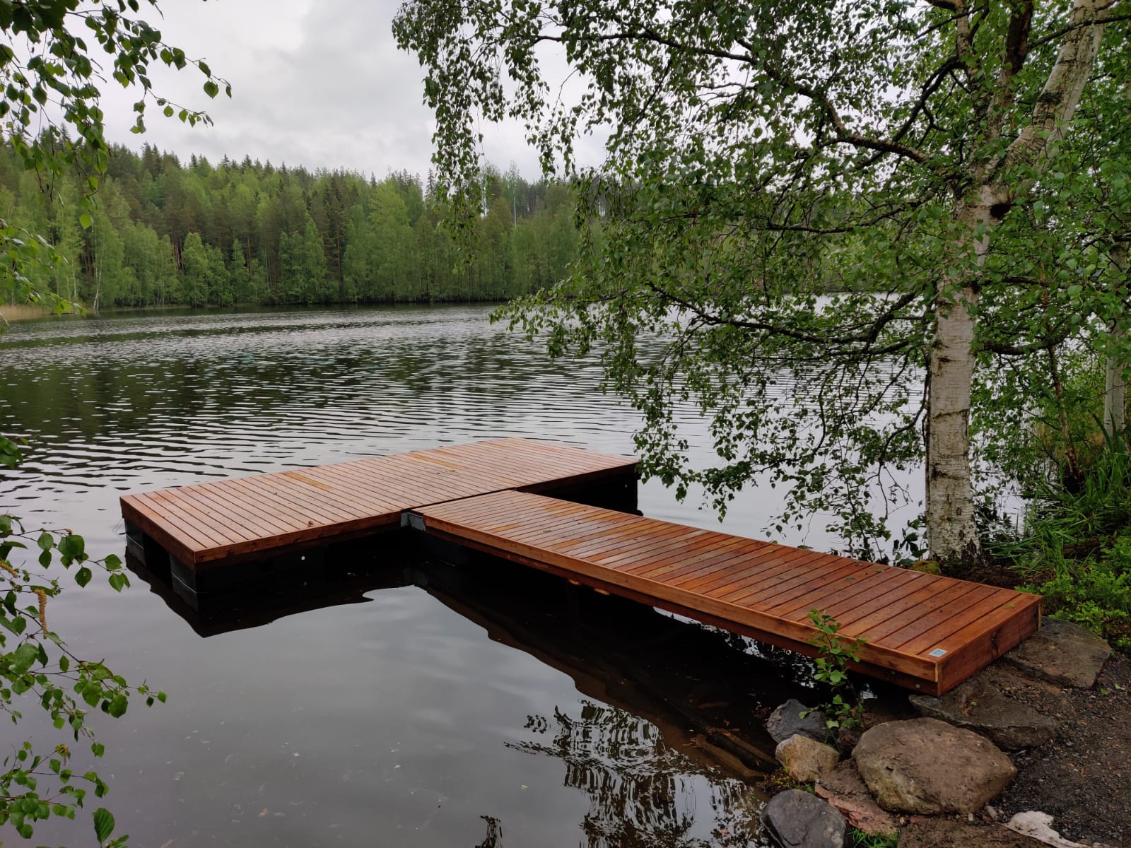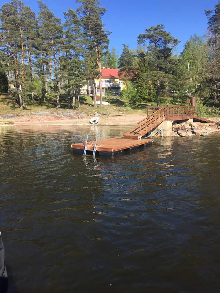 Edi on tukevilla ponttoneilla varustettu leveä kelluva laituri. Se sopii mökkirantaan uimalaituriksi tai veneenkiinnityslaituriksi.