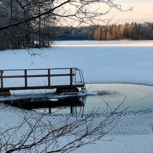 Kasettilenkin läpi lyödään pohjaan metalliputket, jotka pitävät laiturin paikallaan sekä mahdollistavat veden korkeuden vaihtelun.