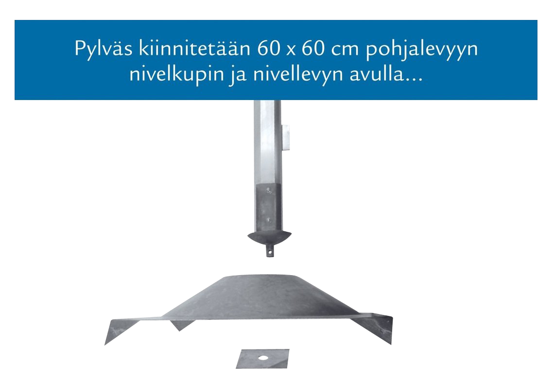 Huom. Pylväät myydään pareittain ja ne ovat tehtaalla jo kasattuina valmiina käyttöön. Pylväisiin kiinnität vain pohjatassut ja tietenkin pylväiden kiinnikkeet (kiristinrungot) laituriin. Myös kiristinrunkojen kiinnityspultit ja ohjeet tulevat paketin mukana.