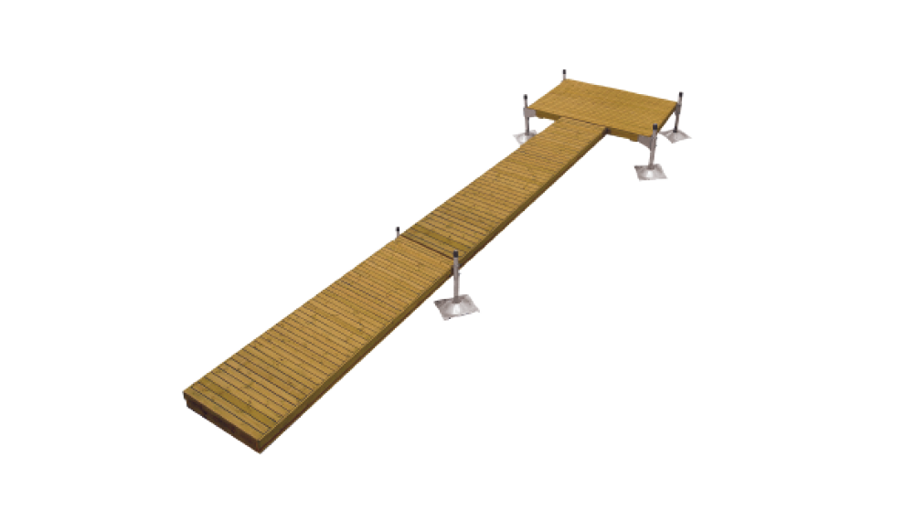 Oloneuvos jatkeella on suosituimman pylväslaiturimallimme pidennetty versio. 10-metrinen käyntisilta osuus on vakaa säädettävien pylväiden ansiosta. Kokonaisuus on tukeva ja turvallinen niin lapsille kuin vanhemmille ihmisille. Tukevuutensa ja koonsa vuoksi tämä malli soveltuu erinomaisesti oleskelu ja uintilaituriksi.