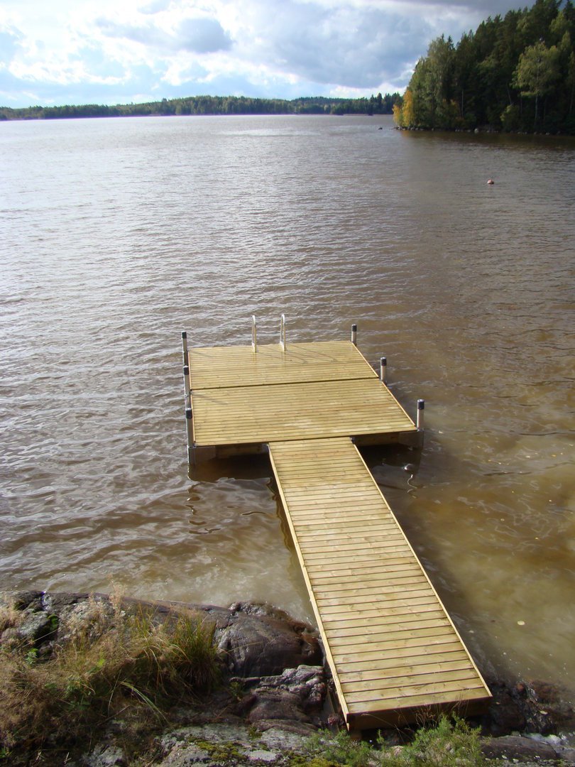 Tämä laituri toimitetaan irto-osina jolloin, kuljetus ja sen vienti asennuspaikalle on helppoa. Kansilaudat sekä runkopuut ovat valmiiksi määrämittaan sahattuja. Myöskin kiinnitystarvikkeet kuten ruuvit ym. ovat mukana toimituksessa unohtamatta selkeitä kuvallisia ohjeita. Kasausta varten et tarvitse erikoistyökaluja vaan yleensä jo valmiiksi mökiltä löytyvillä perustyökauluilla pärjää. (Mittanauha, ruuvinväännin, vasara, kiintoavaimien koot 10 mm, 13 mm ja 17 mm.)