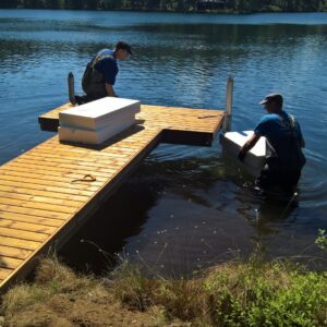 25 kiloa painavat raudoitetut betonipohjapainot kelluvien laitureiden sekä poijujen ankkurointiin.