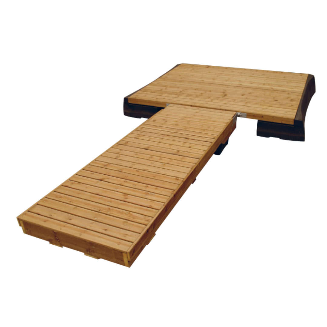 Laiturin käyntisilta ja päätyosa yhdistetään toisiinsa kestävillä E-saranoilla. Kellukkeina käytetään käyntisillassa 1 kpl M-100 ponttonia ja päädyssä 2 kpl Moduliponttoneita, jotka takaavat erinomaisen vakauden ja kantavuuden.