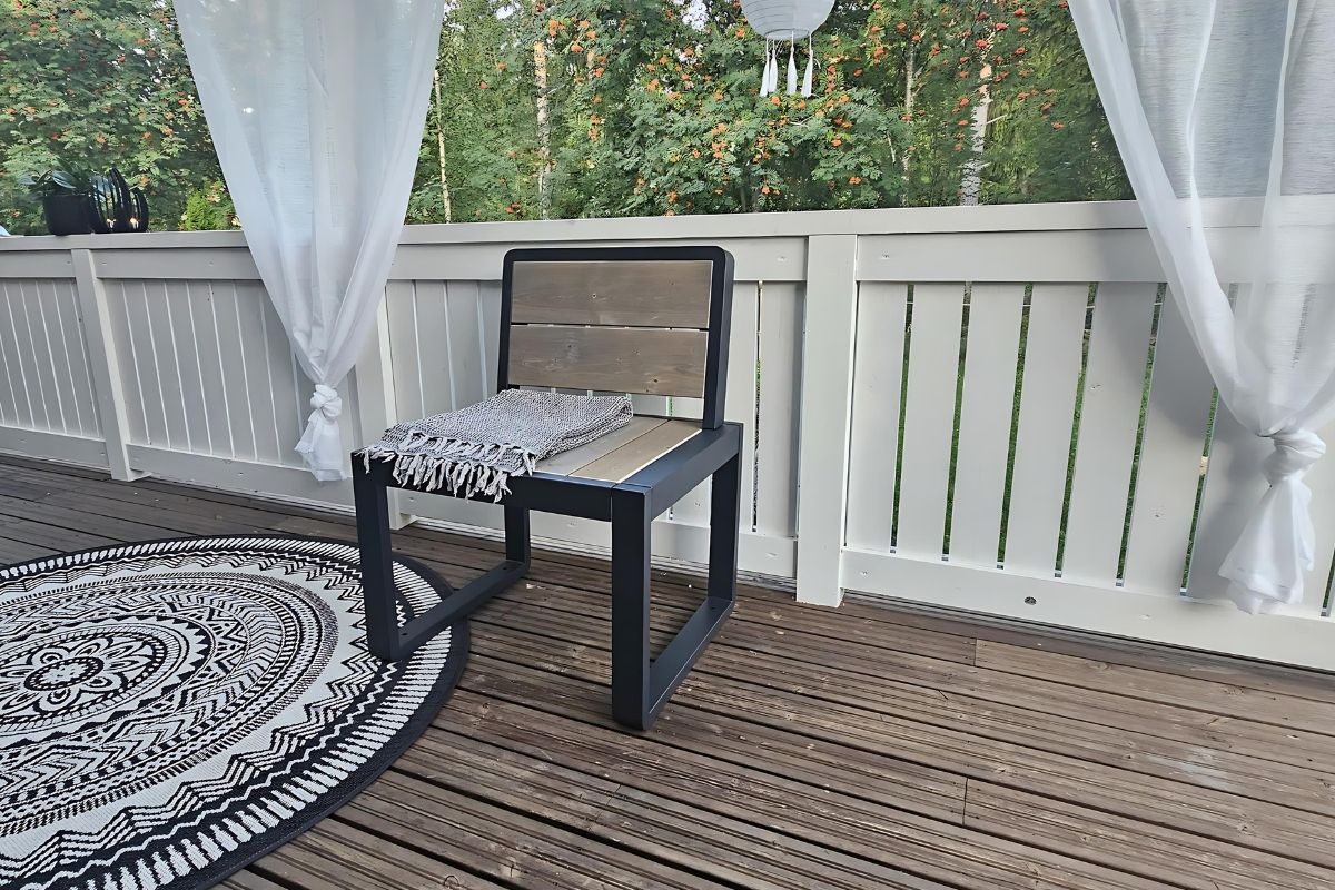 Kotimainen Savorak Design piha- ja laiturikalustevalikoimamme on suunniteltu vastaamaan suomalaisten haastaviin sääolosuhteisiin tarjoten samalla korkeaa laatua, kestävyyttä ja tyylikästä designia. Huolellisesti valittu mustaksi pulverimaalattu ruostumaton teräs yhdistettynä laadukkaaseen säänkestävään kestopuuhun takaa kalusteiden kestävyyden ja tyylikkyyden vuodesta toiseen. Savorak piha- ja laiturikalusteet eivät ole vain ulkonäöltään kauniita, vaan ne on suunniteltu kestämään vaativissa suomalaisissa sääolosuhteissa ympäri vuoden – myös laiturilla käytettäviksi. Valikoimamme tarjoaa monipuolisen ja yhteensopivan valikoiman tuotteita, jotka täyttävät ulkotilojesi kauneuden ja toiminnallisuuden tarpeet.