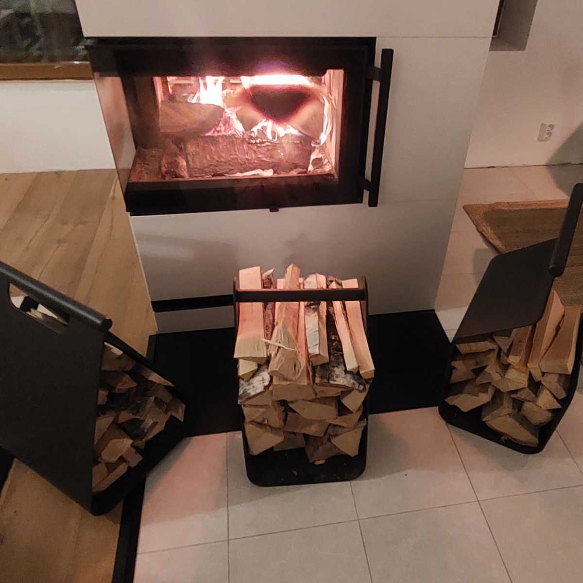 Puunkantoteline toimii sekä käytössä että osana sisustusta – takan vieressä, mökillä tai osana katettua terassi- ja pergolatilaa.
