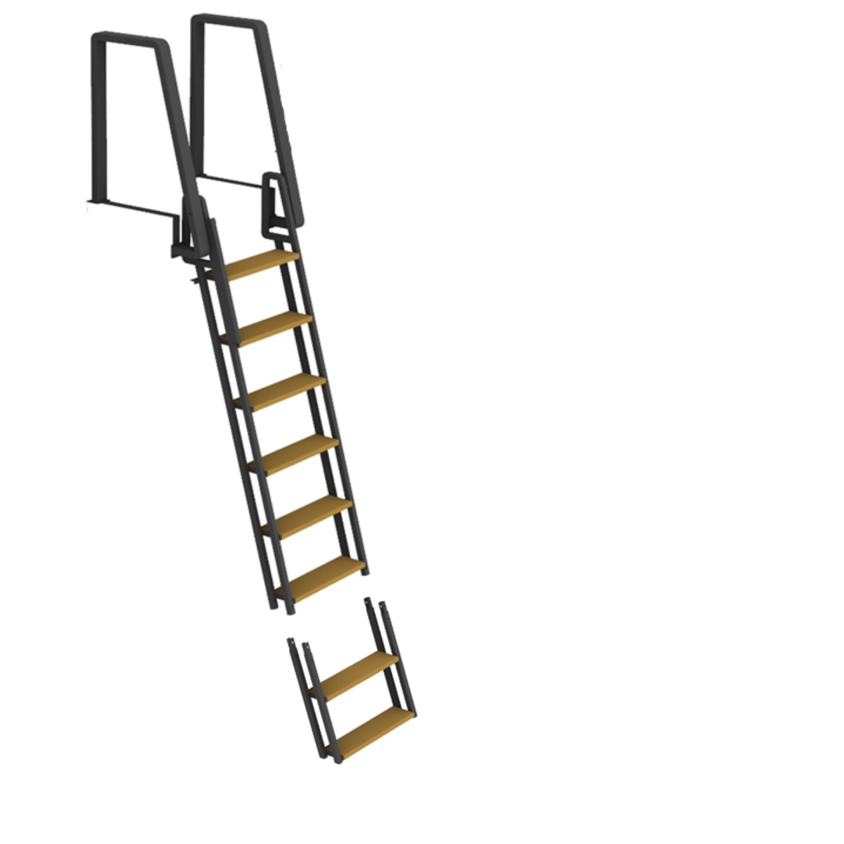 Portaiden yläosa on leveydeltään 66 cm ja puisen porrasosan leveys on 48 cm, joten uimasta on helppo nousta isommankin aikuisen. Porrasosa on vahvistettu tuplarungolla ja portaiden alaspäin mennessä ulkoneva kallistuskulma (18 astetta) helpottaa portaiden käyttöä. Kuusiportainen uimaporras yltää 150 senttimetrin syvyyteen laiturin kannesta mitattuna. Jos tarvitset pidempiä portaita voit jatkaa portaita kahdella askelmalla jatko-osan avulla, jolloin 8-askelmaiselle uimaportaalle tulee mittaa 200 cm laiturin kannesta mitattuna.