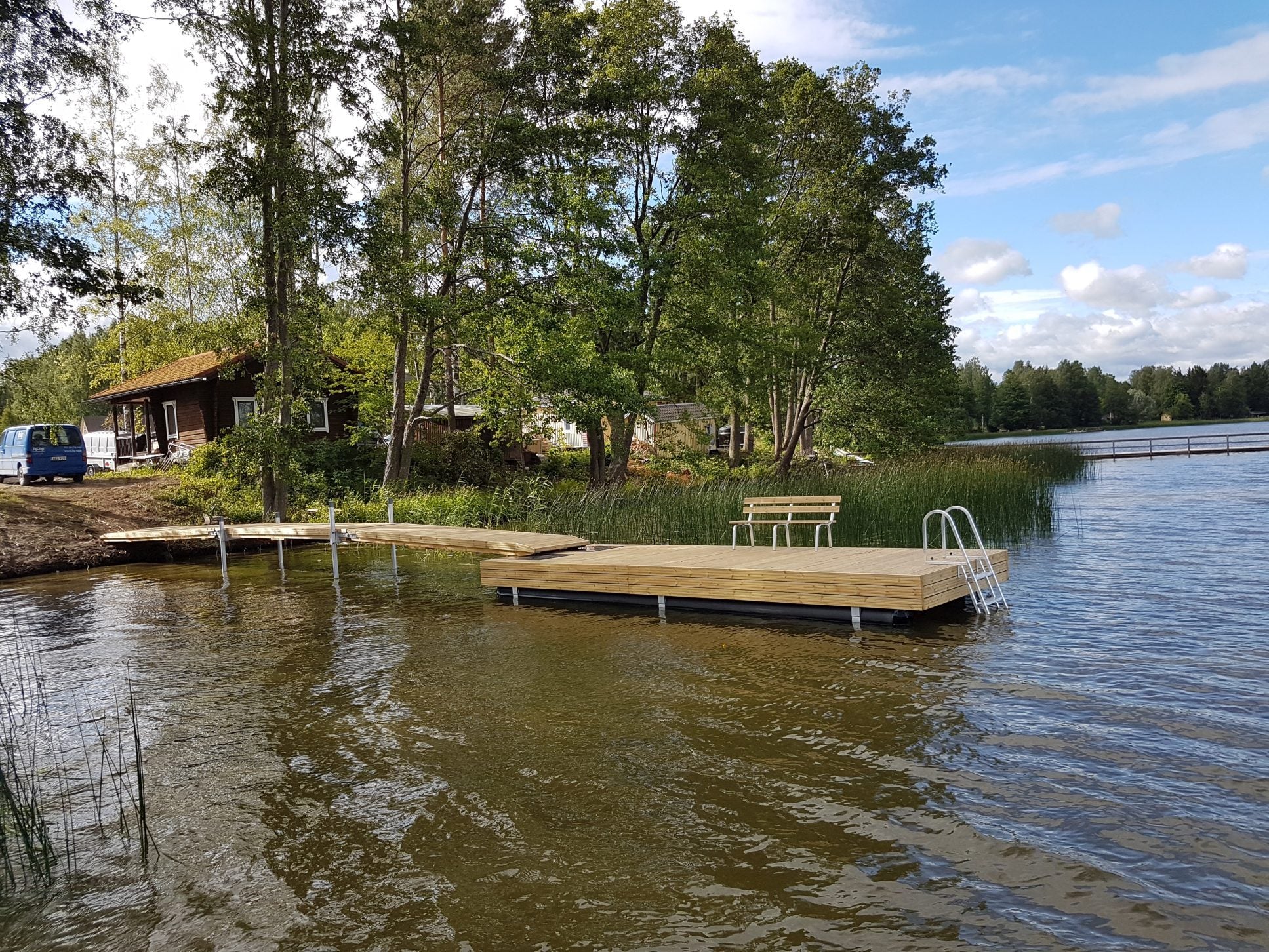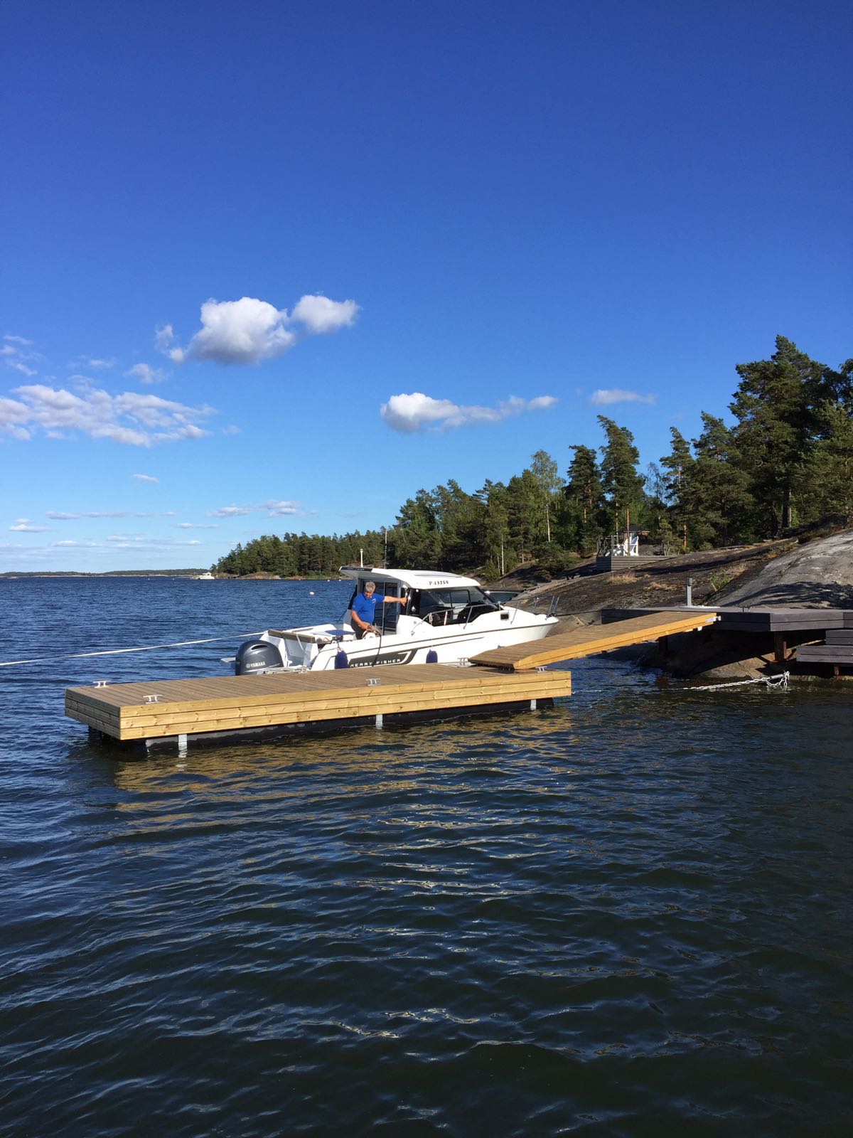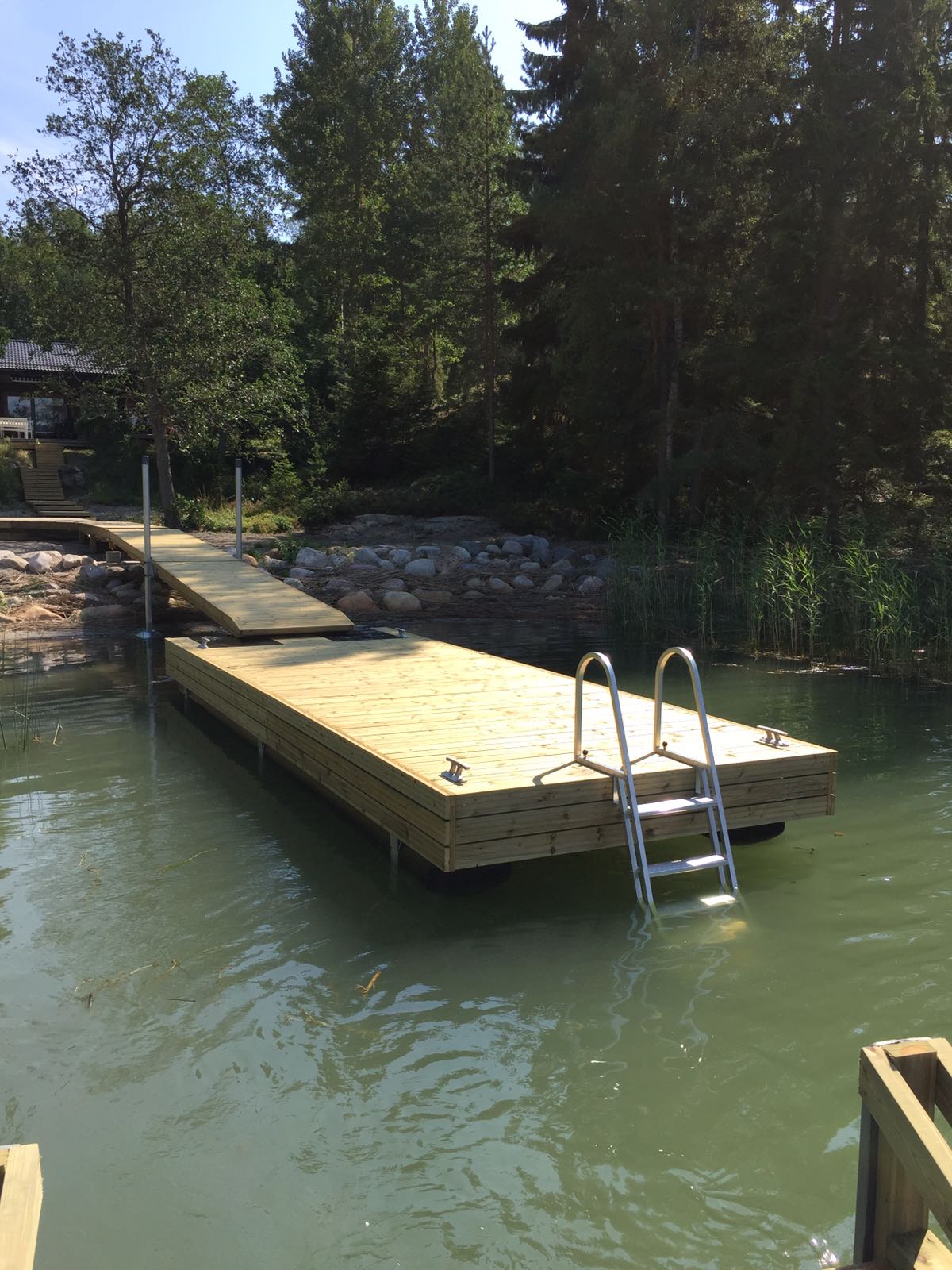 Simeoni on toisiksi suosituin talvehtivista laiturimalleistamme. Putkiponttoneilla varustettu 2,4 m leveä laituri on vakaa toisin kuin 2,4 m leveä betoniponttonilaituri. Simeoni on oivallinen laituri kohteeseen, jossa tarvitaan tilaa säästävä vaihtoehto. Venekiinnitykseen sopiva kansikorkeus. Järeä teräsrunko yhdistettynä betoniponttonilaitureista tuttuun puurunkoon tekee laiturin rakenteesta jäykän sekä kestävän. Soveltuu myös matalampaan rantaan.